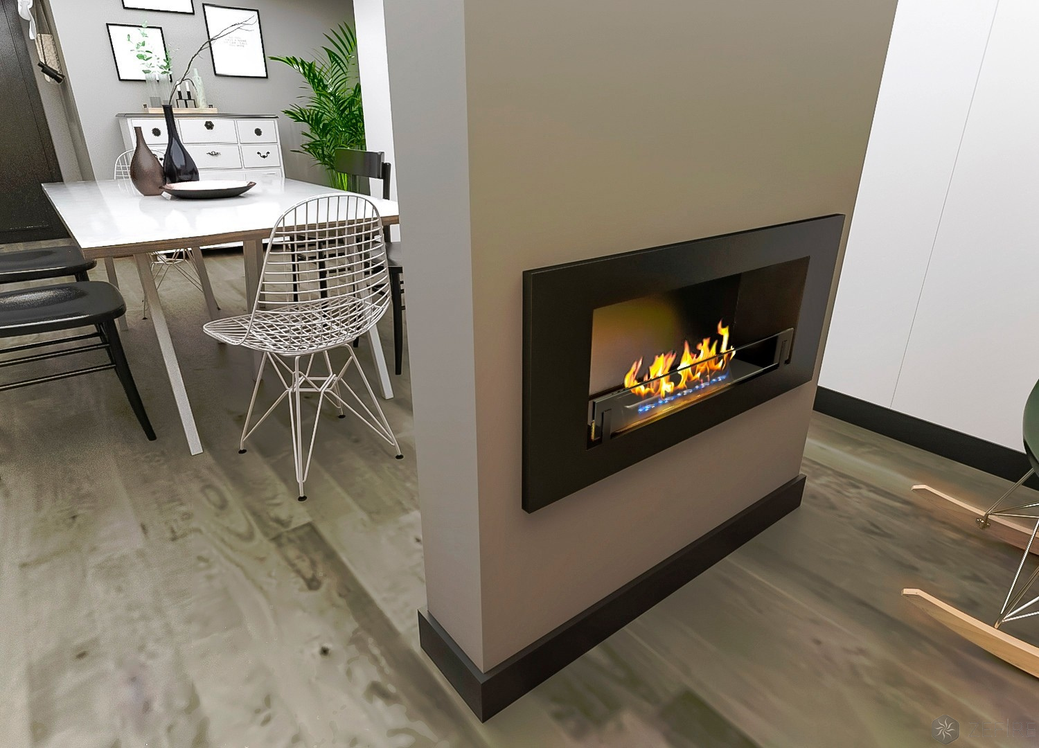 Встраиваемые варианты разделяются на такие как классические, устанавливаемые в подготовленное отверстие в стене или нише. Угловые, которые монтируются в угловую часть стены. Торцевые – открытые с трёх сторон. И сквозные, вид живого огня которых доступен в разных комнатах.
