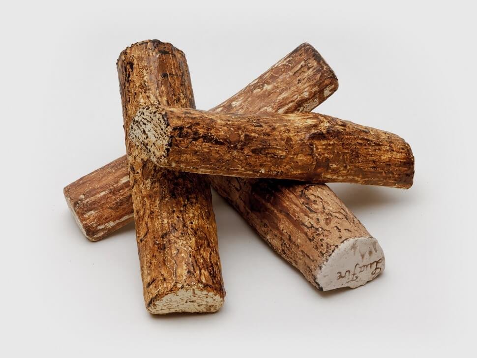 Керамические дрова изготавливаются из шамотной глины и керамического ангоба, проходят обжиг в специальной печи и расписываются в ручную. Не горят и не выделяют вредных веществ. Идеально подходят для декорирования встроенных биокаминов и линий огня