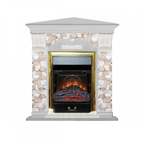 Каминокомплект Glenrich Арочный Арбат угловой (беленый дуб)+Majestic Brass