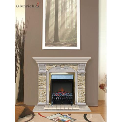 Каминокомплект Glenrich Арочный Грот однотонный (беленый дуб)+Fobos BR