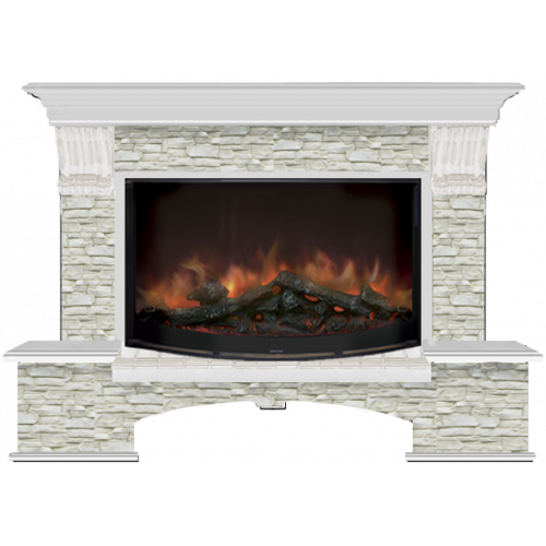 Каминокомплект Glenrich Бостон Грот однотонный 86 (беленый дуб)+Rondo S86