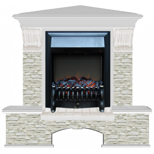 Каминокомплект Glenrich Бостон К Грот однотонный угловой (беленый дуб)+Fobos Black