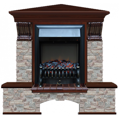 Каминокомплект Glenrich Бостон К Грот цветной угловой (красное дерево)+Fobos Black