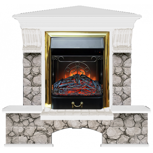 Каминокомплект Glenrich Бостон К Карелия угловой (белый)+Majestic Brass
