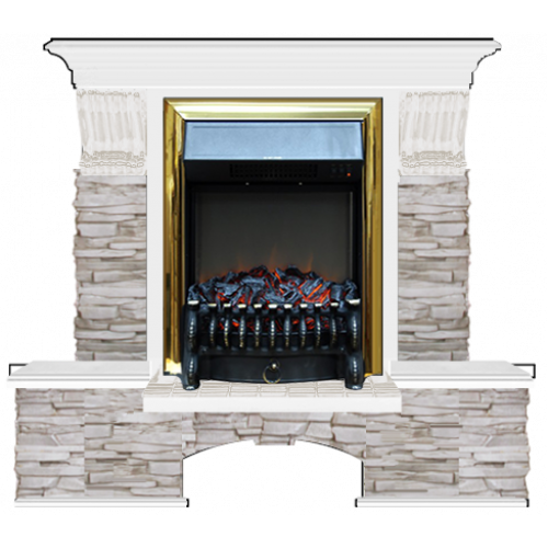 Каминокомплект Glenrich Бостон К Мисхор (белый)+Fobos Brass