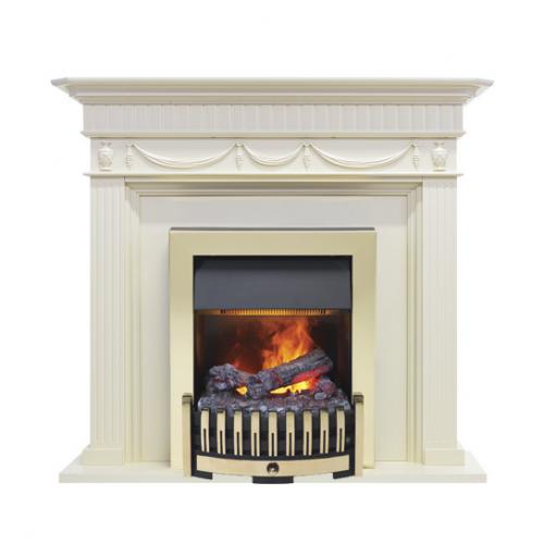 Каминокомплект «Corfu», оформленный паровым очагом «Danville Brass», представлен производителем Dimplex и выполнен в благородном цвете слоновой кости. Габариты изделия относительно небольшие, и его размер становится визуально меньше за счет светлой расцветки. Поэтому установка такого камина возможна даже в небольших по площади помещениях.