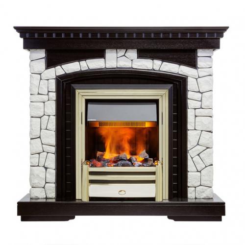 Каминокомплект «Glasgow», который может комплектоваться очагами «Cavendish» или «Chesford», стилизован под старинные классические камины, которые устанавливались в деревенских домах. Но это не значит, что использование данного каминокомплекта актуально только в загородных домах. Он способен стать достойным украшением интерьера и городской квартиры. Выполнен портал из МДФ, а облицовка его осуществляется материалом, имитирующим дикий белый камень. Декоративные элементы покрыты натуральным шпоном цвета темного дуба, что составляет с цветом камня неплохой контраст.