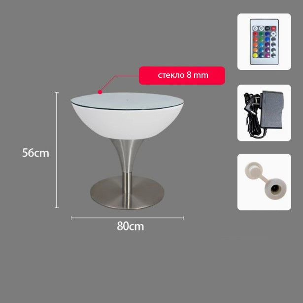 Стол светящийся круглый на металическом основании 80х80х56